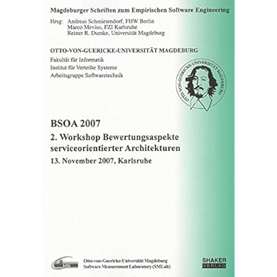 BSOA 2007: 2. Workshop Bewertungsaspekte Serviceorientierter Architekturen, 13. November 2007, Karlsruhe (Magdeburger Schriften Zum Empirischen Software-Engineering) PDF. 26 12 2016 2 2 BSOA 2007: 2. Workshop Bewertungsaspekte Serviceorientierter Architekturen, 13. November 2007, Karlsruhe (Magdeburger Schriften Zum Empirischen Software-Engineering) Download Free. Other Files Available to Download PDF Applying Health And Safety Training Methods A Study Guide To Accompany.